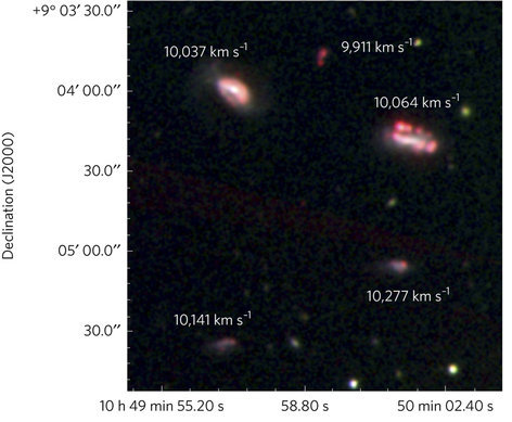 Embora costumemos confiar no que vemos, em astronomia isso raramente é suficiente. Para estabelecer a identidade dos objetos que os autores identificaram como grupos de galáxias, eles posteriormente realizaram espectroscopia para confirmar que as candidatas a galáxias anãs estavam de fato associadas com os grupos identificados visualmente nas imagens. Utilizando informação sobre distâncias e amplitude das velocidades de dispersão projetadas (veja Fig. 2), combinada com o conhecimento da quantia típica de matéria escura para galáxias anãs, os autores realizaram cálculos dinâmicos, cujos resultados implicam que as associações observadas são provavelmente estruturas ligadas.