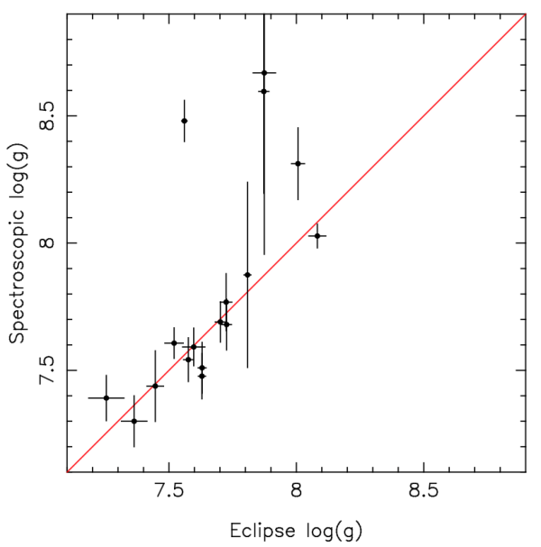 Os autores sugerem diferentes métodos, mas o que funciona melhor na amostra deles é utilizar o avermelhamento gravitacional estimado da espectroscopia. Como a gravidade das anãs brancas é realmente alta (cerca de 350,000 vezes a gravidade na Terra!), a o comprimento de onda da luz é deslocado uma quantia mensurável para o vermelho conforme os fótons afastam-se da estrela, como se fossem atrasados. A quantia de desvio para o vermelho depende da massa e do raio da anã branca. Combinando isso com a terceira lei de Kepler, obtemos uma relação entre o raio da anã branca e a inclinação da órbita. Tudo que precisamos é estimar a amplitude da variação da velocidade radial para ambas estrelas – daí a necessidade de espectroscopia, que também é utilizada para estimar a temperatura efetiva da anã branca. Voltando à terceira lei de Kepler com a inclinação obtida, podemos estimar também a massa da anã branca.