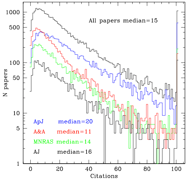 Existem várias maneiras simples de aumentar o número de citações em um artigo. Algumas são previsíveis: se você é famoso na comunidade (como um ganhador do prêmio Nobel), ou trabalhando em um assunto popular como exoplanetas ou cosmologia, você tende a ser citado com mais frequência. Outras fazem bastante sentido: artigos que são úteis para vários campos, como mapas de extinção, medidas de parâmetros cosmológicos e grandes projetos de mapeamento estão frequentemente entre os artigos mais citados em astronomia. Há também o astro-ph, um serviço de divulgação prévia à publicação que é bastante popular. Já foi mostrado que artigos que aparecem no astro-ph são citados duas vezes mais que aqueles que não e, além disso, aqueles que aparecem no topo da lista têm duas vezes mais chance de serem citados do que aqueles que aparecem mais abaixo.