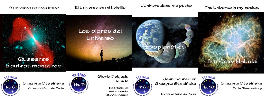 TUIMP (http://www.tuimp.org/) é a abreviação de “the Universe in my pocket”, ou seja, “o Universo no meu bolso”. A ideia é simples: através de folhas de fácil impressão no formato A4, criar livrinhos de astronomia que ensinam conceitos básicos de astronomia e que possam ser facilmente distribuídos, dobrando essas folhas impressas. É só imprimir e colocar no bolso! Até o momento são 11 tópicos, que vão desde exoplanetas até quasares, com textos que buscam introduzir astros celestes que hoje são objetos de complexas pesquisas para pessoas com pouca instrução em astronomia, principalmente crianças.