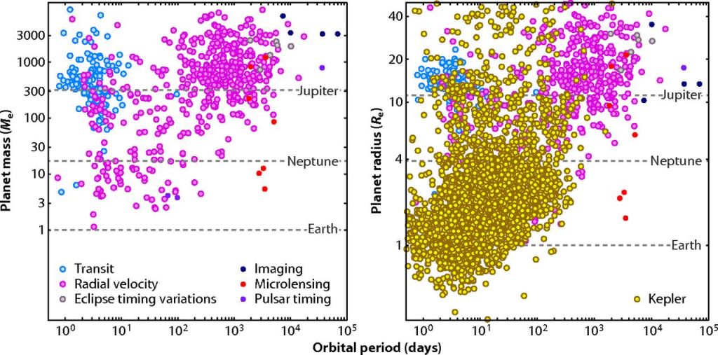Um dos planetas mais favoráveis para a detecção de biossinaturas são as super-Terras, um tipo de planeta que não encontramos no nosso Sistema Solar. Juntamente com planetas mini-Neptuno, eles constituem a maior parte de planetas já detectados pela missão espacial Kepler (ver Figura abaixo). Por serem mais massivas do que um planeta do tipo Terra, elas são mais facilmente detectadas pelas técnicas de velocidade radial ou de trânsito planetário. Além disso, por terem uma área maior de superfície, elas também são mais favoráveis para o estudo de emissão de radiação térmica que pode caracterizar sua estrutura térmica global.