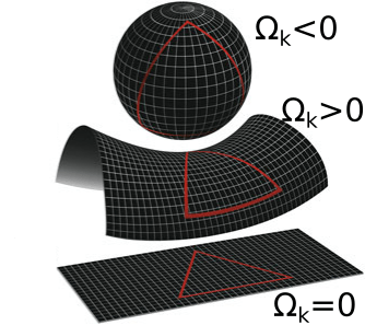 Caracterizamos a curvatura pelo parâmetro Ωk. Usando a convenção de sinal do autor do artigo de hoje, um Ωk negativo indica um Universo fechado, enquanto um Ωk positivo indica um Universo aberto. Se o Universo for plano, Ωk é exatamente zero